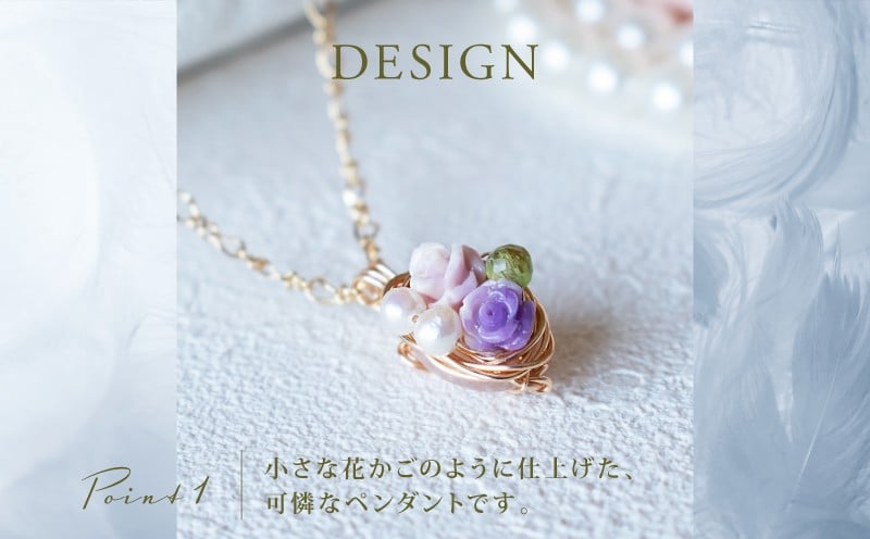 - ペンダント ローズクォーツの小さな花かごペンダント 14kgf ワイヤー ローズ クォーツ 練り石 フラワー 淡水 パール ペリドット 花 ネックレス チェーン アクセサリー ジュエリー 宝石 create2418 奈良県 奈良市 なら c2406