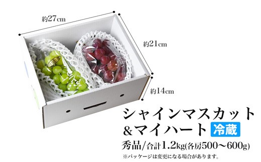 ぶどう シャインマスカット&マイハート1.2kg 秀品 ギフト箱入り 【令和8年度 先行予約】 FSY-2658
