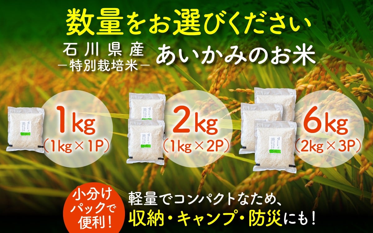- 【先行予約 令和7年産】【容量が選べる】KITO あいかみのお米 1kg or 2kg or 6kg 石川県産 特別栽培米 【コシヒカリ・つきあかり・ミルキークイーンのいずれか届く】 / 新米 令和7年産 米 単一原料米 国産 こめ コメ 白米 食品 常温 ご飯 お取り寄せ 送料無料