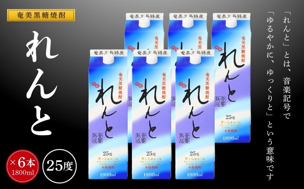 奄美黒糖焼酎 れんと 紙パック25度 1800ml×6本 奄美 黒糖焼酎 ギフト 奄美大島 お土産【焼酎 黒糖焼酎 酒 お酒 地酒 アルコール お取り寄せ 人気 おすすめ 鹿児島県 瀬戸内町 BY003】