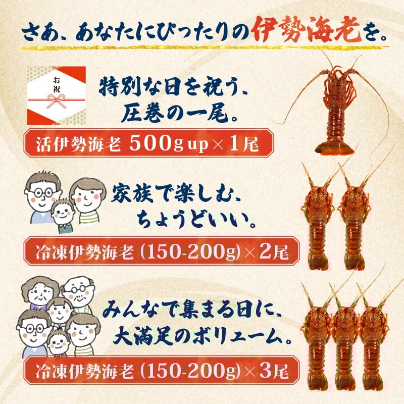 伊勢海老 選べる 150g ~ 500g 「活」き 冷蔵 冷凍 数量限定 期間限定 伊勢海老 伊勢エビ 伊勢 海老 エビ イセエビ 刺身 焼き物 お味噌汁 鍋 ボイル エビフライ アレンジ可 新鮮 海鮮 ギフト 贈答 三重県 志摩市