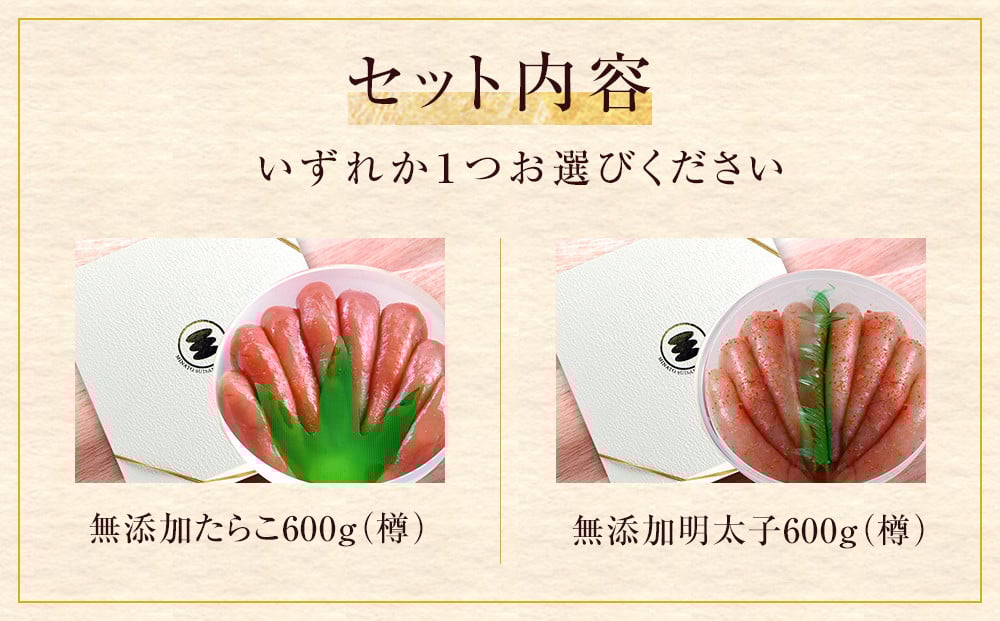 - 無添加 たらこ 明太子 600g樽コース 【選べる2種類】 鰹節と昆布の天然だし 手漬 手作り 贈答用 愛情たらこのみなと