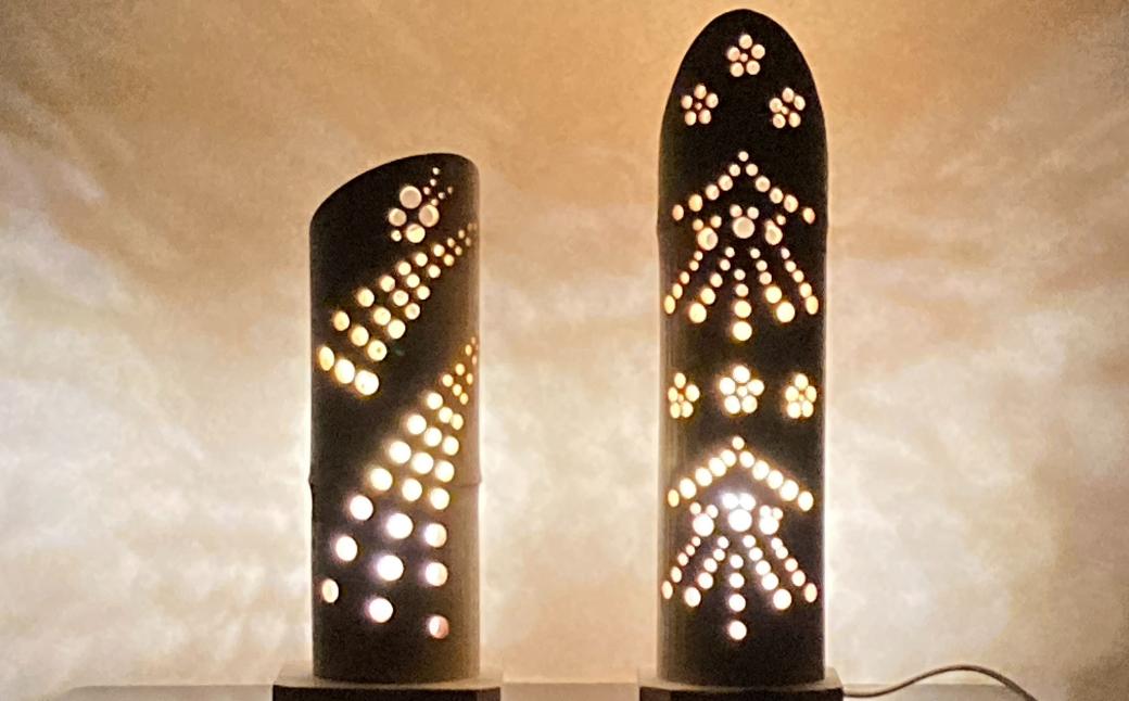 竹あかり 桔梗&滝 桜&クリスマスツリー 竹細工 竹灯籠 ランプ ランタン 間接照明 【022S104】