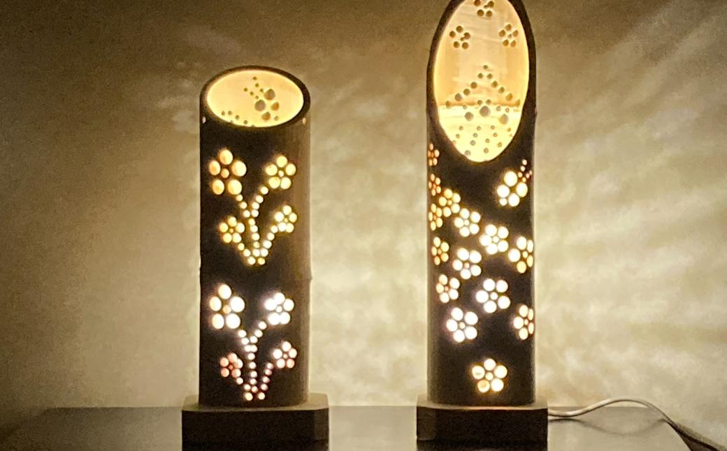 - 竹あかり 桔梗&滝 桜&クリスマスツリー 竹細工 竹灯籠 ランプ ランタン 間接照明 【022S104】