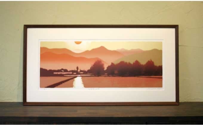 福本吉秀版画「安曇野夕照」| 版画 アート 雑貨 絵 インテリア 絵画 風景画 長野県 松川村 信州