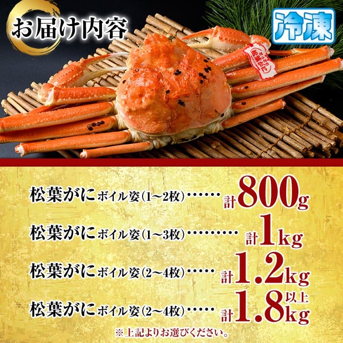 <容量選べる>松葉がに ボイル姿(1~4枚・計800g~1.8kg以上)【sm-AK003・sm-AK004・sm-AK006・sm-AK008】【大漁市場なかうら】