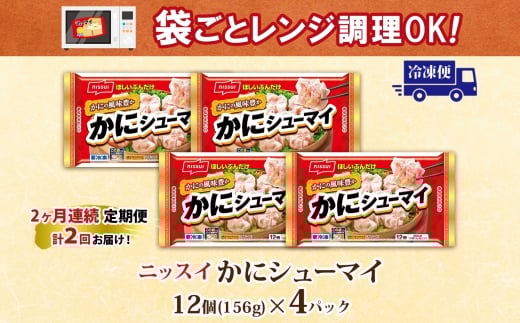 - <毎月定期便>ニッスイ かにシューマイ 12個入 4パック カニの風味豊か レンジで簡単 冷凍全2回【4076980】