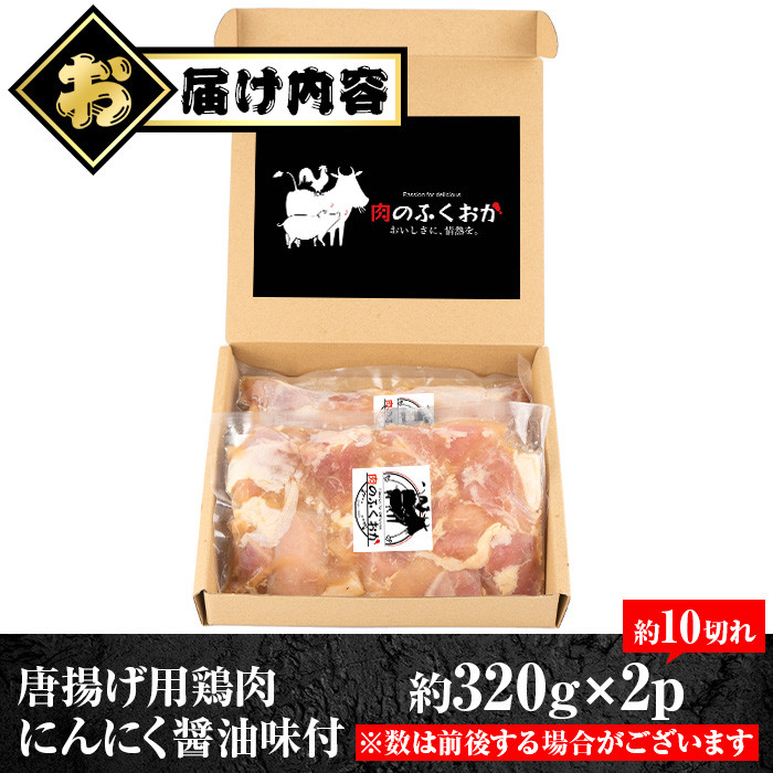 P79002 唐揚げ用鶏肉にんにく醤油味付(計640g・320g×2) 鹿児島 国産 鶏肉 お肉 にんにく 味付け からあげ 唐揚げ おかず チキンソテー 冷凍【肉のふくおか】