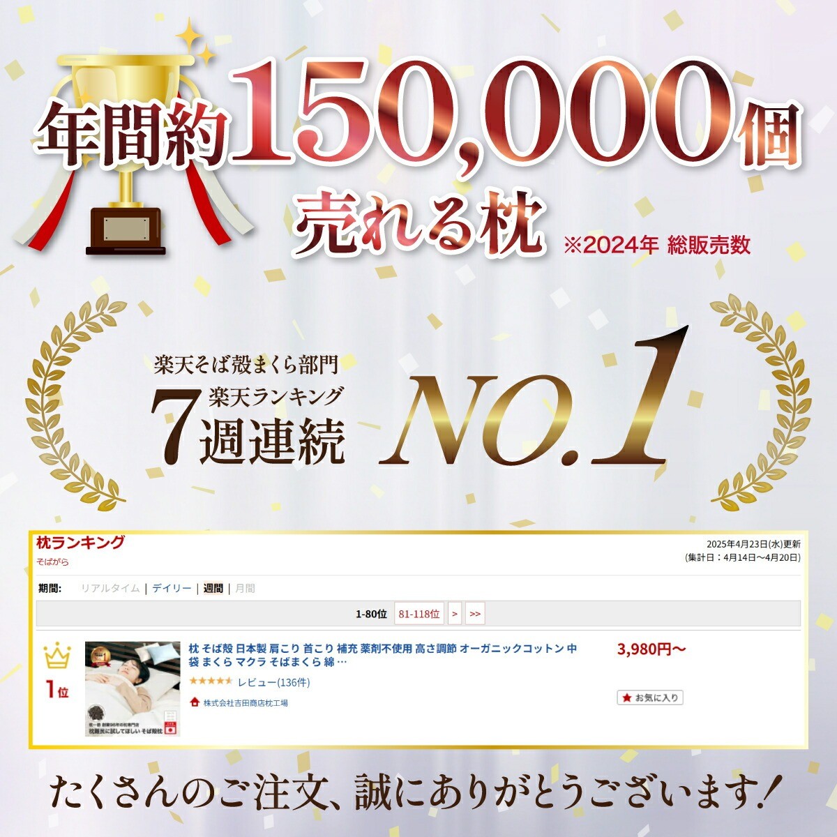 昔ながらの そば枕 2個 アンサンブル枕カバー各1枚付[0382]