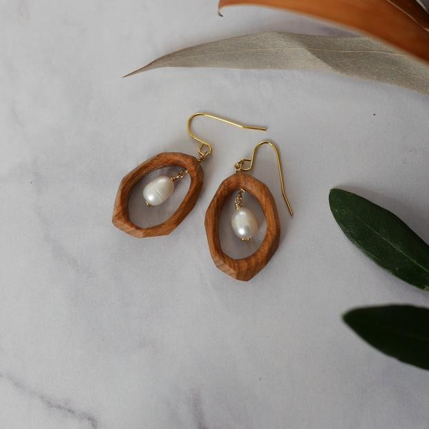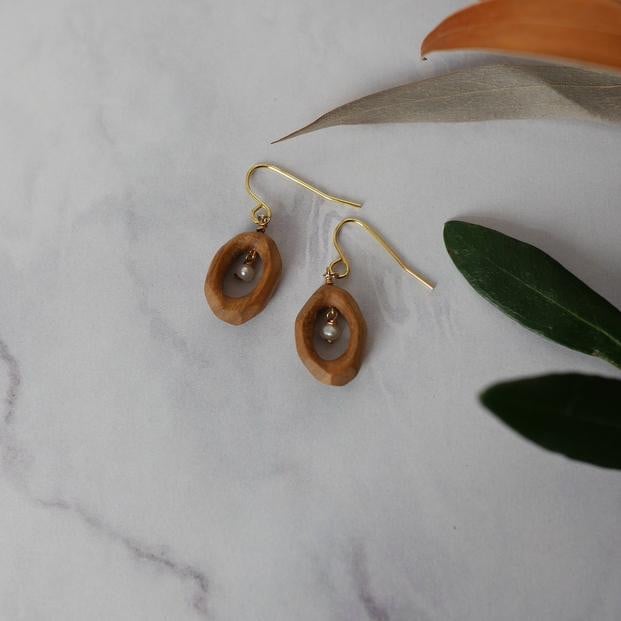 コットンパールイヤリング・チェーンタイプ(8mm・ローズブラウン)【1517823】