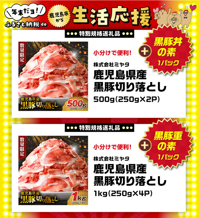 - 【ふるさと納税】【12/21入金まで年内発送】【期間限定 生活応援】【14営業日以内に発送】<容量選べる> 鹿児島県産 黒豚 切り落とし 500g 〜 3kg 数量 限定 肉 豚肉 切落し スライス 小分け 大容量 ボリューム パック 袋 冷凍 ミヤタ 鹿児島 おすすめ ランキング