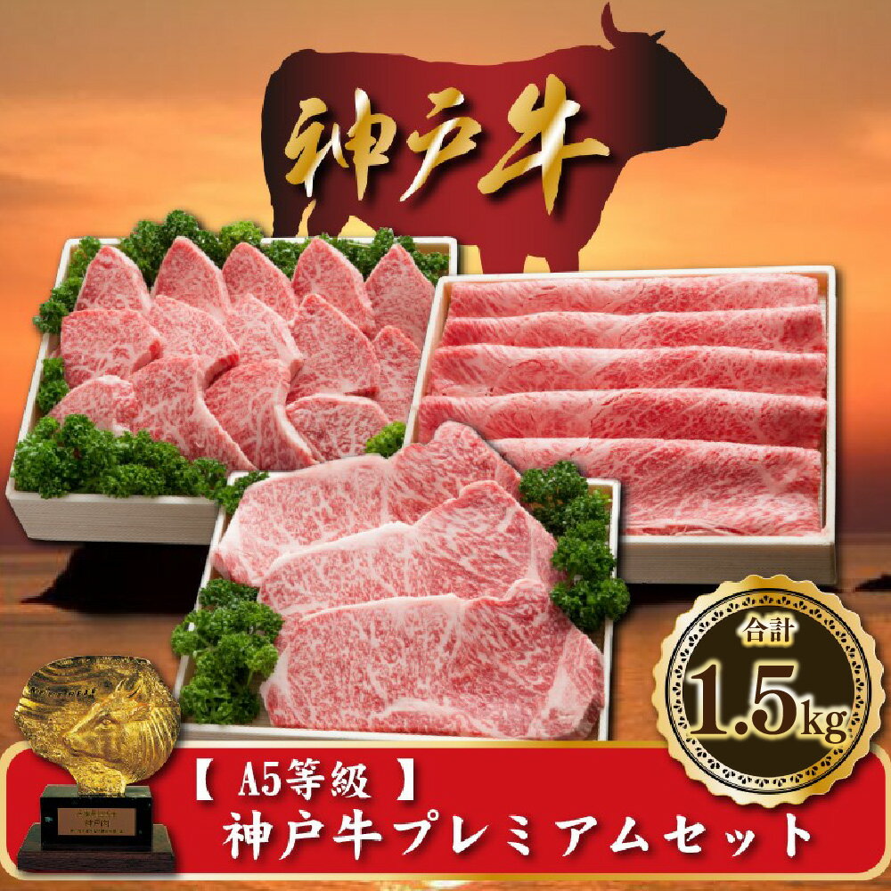 - 【ふるさと納税】【A5等級】 神戸牛 プレミアムセット SOLS10 計1500g 1.5kg 牛肉 肉 お肉 神戸ビーフ ブランド牛 霜降り サーロイン ステーキ すき焼き しゃぶしゃぶ 焼肉 バーベキュー セット 冷凍 兵庫県 新温泉町 送料無料【2026年4月上旬~11月下旬まで順次発送予定】
