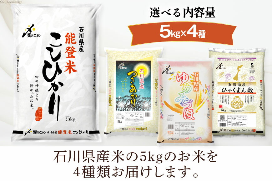 - 【ふるさと納税】 【期間限定発送】米 令和7年 石川県産米 4種食べ比べ 2kg / 5kg ×4種 こしひかり ゆめみづほ ひゃくまん穀 つきあかり [中橋商事 石川県 宝達志水町 38601100] 米 コシヒカリ レビューキャンペーン