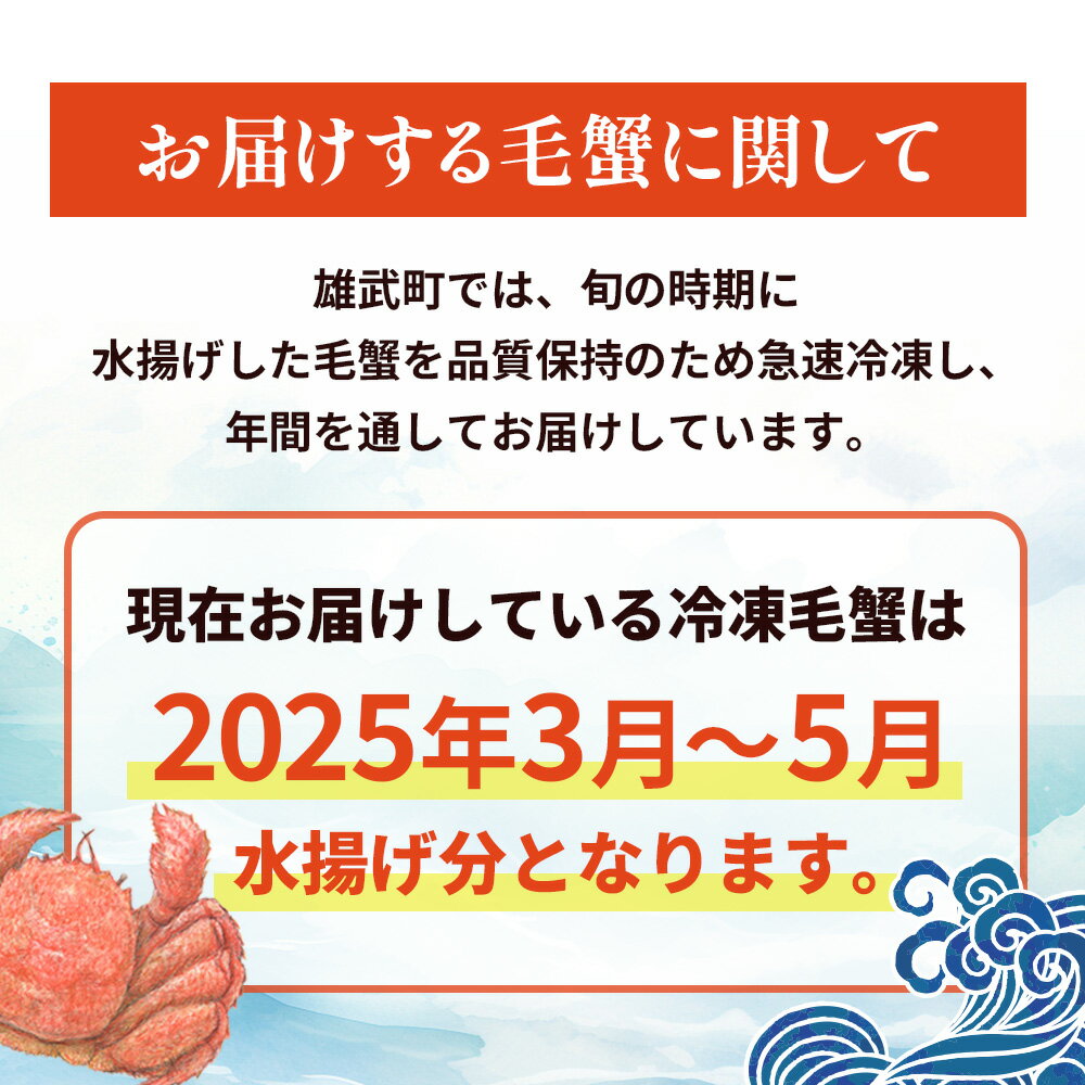 - 【ふるさと納税】【北海道雄武町産】やわらか殻の甘旨毛蟹 800g前後1尾 | 毛ガニ カニ かに 蟹 殻付き 浜茹で ジューシー 海産物 海鮮 冷凍 鮮度直送 柔らかい 食べやすい 蟹料理 ギフト おすすめ 贈答用 鮮魚 食材 海の幸 お取り寄せ 北海道 雄武町 雄武【07180】