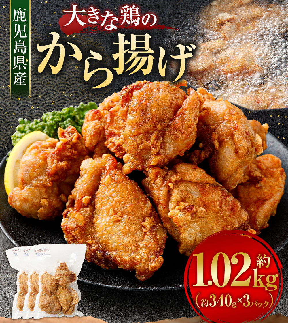 【ふるさと納税】 鹿児島県産 大きな鶏のから揚げ 約1.02kg (約340g×3パック) 唐揚げ 冷凍 からあげ 鶏のから揚げ 鶏の唐揚げ レンジ 国産 国産肉 揚げ物 鹿児島県 薩摩川内市 送料無料 AS-1103
