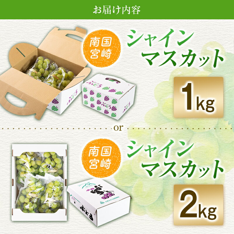 - 【ふるさと納税】【令和8年発送 先行予約】【選べる内容量】小林市産 シャインマスカット 1~2kg(ブドウ ぶどう シャインマスカット マスカット フルーツ 果物 先行受付 限定)