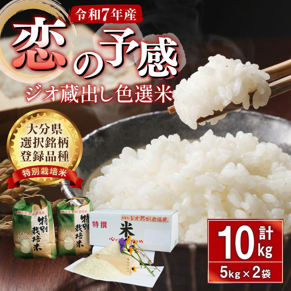 - 【ふるさと納税】ジオ蔵出し色選米 特別栽培米 計10kg (5kg×2袋) 令和7年産 「恋の予感」 大分県選択銘柄登録品種 ブランド米 ジオパーク お米 精米 白米 弁当 ごはん ご飯 コメ 和食 おにぎり 国産 九州産 大分県 豊後大野市産 もちもち 送料無料