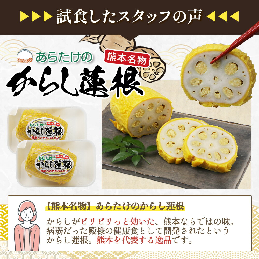 【ふるさと納税】熊本名物!あらたけの からし蓮根 2本 セット (200g×2) 辛子 レンコン れんこん 熊本 名産 名物 おつまみ 肴 本数選べる 老舗蒲鉾店 野菜 ピリ辛 練り物 熊本県 多良木町 球磨郡