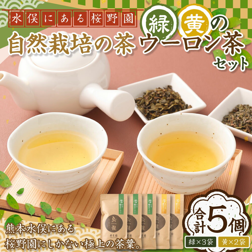 【ふるさと納税】熊本水俣にある桜野園のお茶 自然栽培の茶「緑」と「黄」のウーロン茶セット 計5個入り お茶 茶 ドリンク 茶葉 ウーロン茶 烏龍茶 詰め合わせ セット 常温 九州 熊本県 送料無料