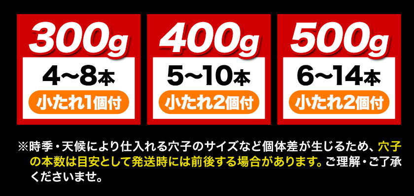 - 【ふるさと納税】訳あり 職人炭火焼き穴子 特選ブレンド 選べる容量 300g(4-8本) 400g(5-10本) 500g(6-14本) 鈴木鮮魚有限会社《30日以内に出荷予定(土日祝除く)》岡山県 備前市 穴子 送料無料 国産 瀬戸内海 対馬