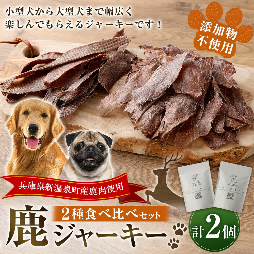 - 【ふるさと納税】鹿ジャーキー 2種 食べ比べ セット 合計85g ジャーキー 鹿肉 鹿 肉 肉箔 鹿もも もも肉 ペット トリーツ おやつ 犬 いぬ イヌ 猫 ねこ ネコ 添加物不使用 兵庫県 新温泉町 送料無料