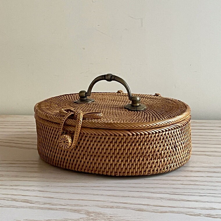 - 【ふるさと納税】アタ 真鍮 取っ手 楕円 バスケット 無地 W20×D15×H6.5 おすすめ 雑貨 収納 かご ケース 箱 物入れ インテリア グッズ オリジナル 手作り プレゼント ギフト おしゃれ 花 かわいい キュート 小物 文房具 リボン リビング 便利 数量限定 バリ島 ATABRASS SOA