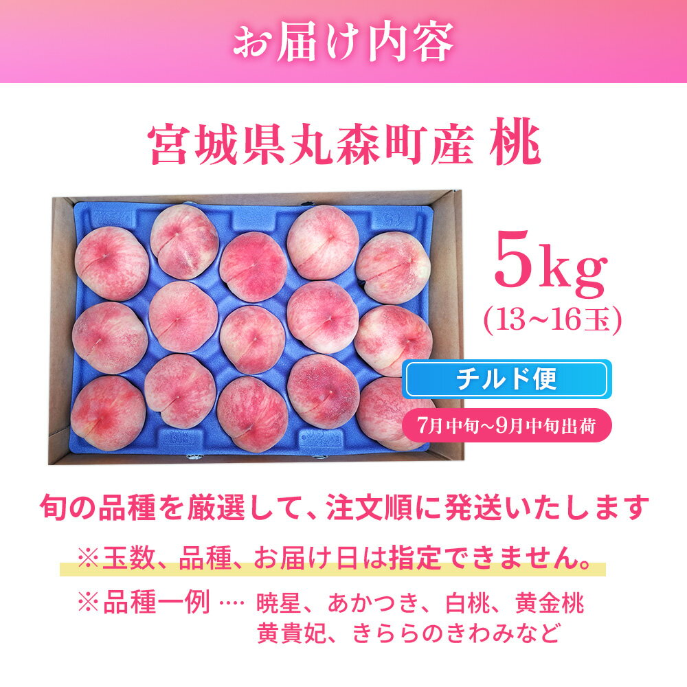 【ふるさと納税】【先行予約】《7月中旬~9月中旬出荷》 宮城県丸森町産 桃 13玉~16玉(約5kg)|宮城県 丸森町 桃 もも モモ 5kg 1箱 果物 もも品種おまかせ 白桃 黄桃 暁星 あかつき 白桃 黄金桃 黄貴妃 きららのきわみ 産地直送 ふるさと納税【48005】