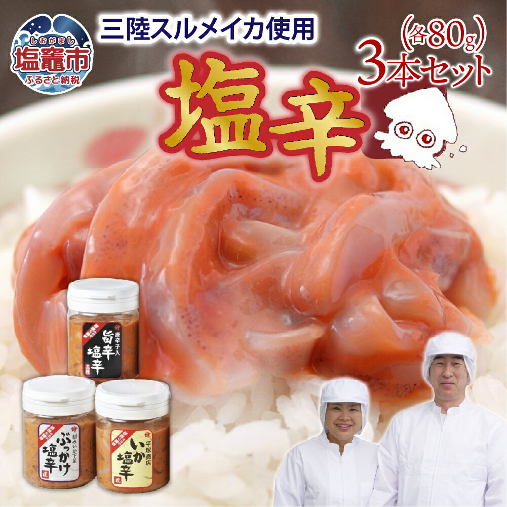 【ふるさと納税】三陸産スルメイカ使用 塩辛3本セット| 三陸産 スルメイカ 手造り 海鮮 いか 旨辛 塩辛 しおから セット おつまみ 珍味 塩竈市 塩釜市 宮城県 平塚商店 ih00011