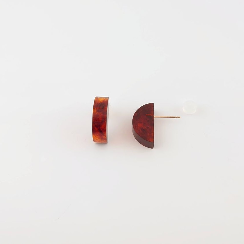 - 【ふるさと納税】Amberlogue ピアス 半円形(金属素材:K10 琥珀:18×5×8.5mm サイズ:全長8.5mm)
