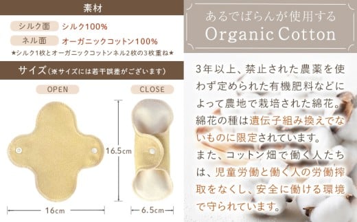 シルク Organic Cotton レギュラー ライナー カモミール 有限会社アルデバラン《45日以内に出荷予定(土日祝除く)》岡山県 笠岡市 オーガニックコットン シルク 布ナプキン ネル生地