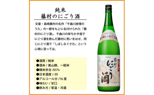 【千曲錦酒造】日本酒1升(1.8L)×2本 純米 藤村のにごり酒(北海道・沖縄県・離島は配送不可)【 信州 長野 佐久 地酒 晩酌 長野県 佐久市 1800ml 】