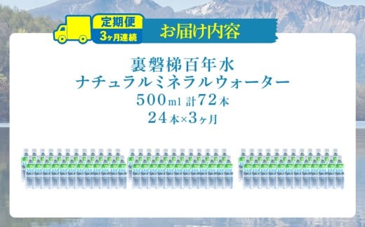 - 【3ヵ月定期便】裏磐梯百年水 ナチュラルミネラルウォーター(500ml×24本×3回)【 ふるさと納税 人気 おすすめ ランキング ミネラルウォーター 湧水 名水百選 小野川 裏磐梯 福島県 北塩原村 送料無料 】 KBJ037