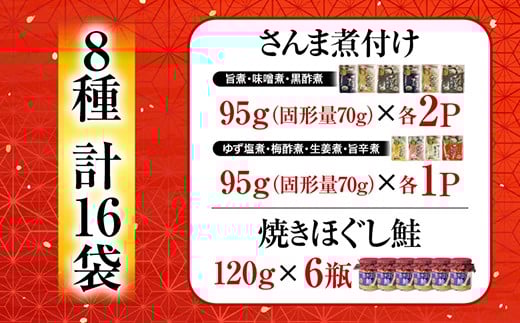 A-09001 さんまの煮付け7種と焼きほぐし鮭セット