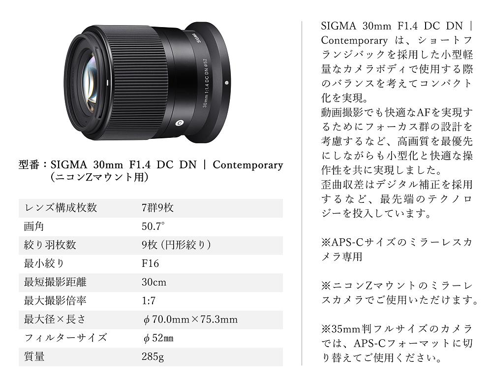 - 【ニコンZマウント用】SIGMA 30mm F1.4 DC DN | Contemporary