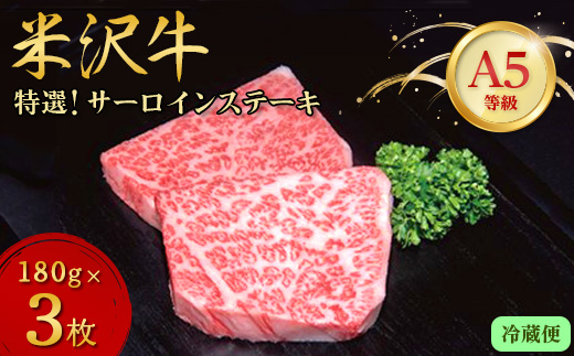 <特選米沢牛A-5>サーロインステーキ 540g(180g×3枚) (冷蔵便)【1204171】