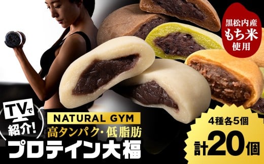 プロテイン大福(ナチュラル・アーモンドチョコレート・抹茶ミルク・黒糖)各5個 合計20個