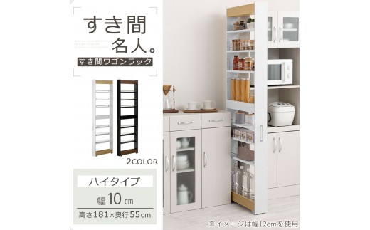 - 【完成品+設置付き】すき間ワゴンラック ハイタイプ〔幅10cm・シンプルタイプ〕(オーク)隙間収納 キッチン キャスター付き キッチンワゴン スリム 収納 すき間収納 ランドリー ラック 薄型 木製 KKONRA945190-0-OAK
