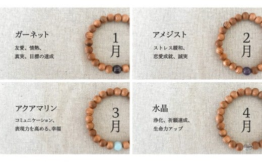 屋久杉×1月誕生石ブレスレット【16cm (S)】