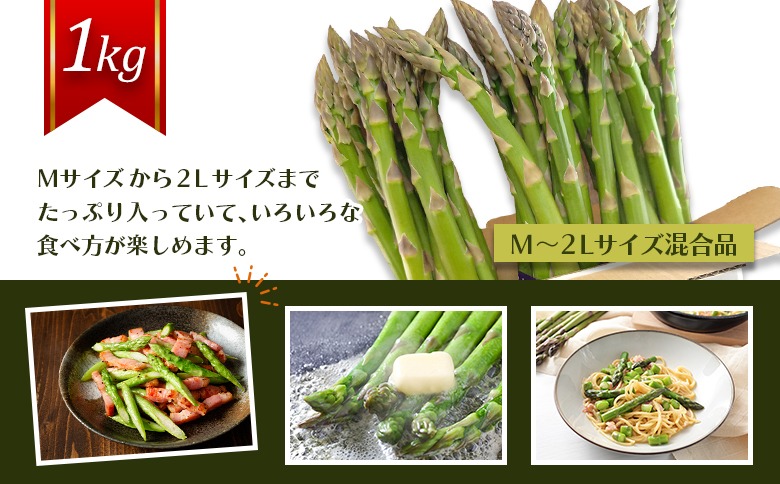 【先行受付】のみやまファームのグリーンアスパラガス(M~2L以上)1kg【05004】