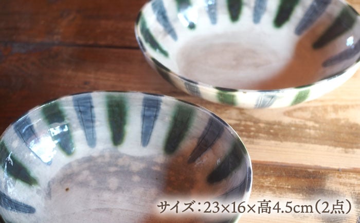 - 【美濃焼】緑彩オーバルボウル2点 セット【リスの木食器工房】食器 皿 楕円 [TCT002]
