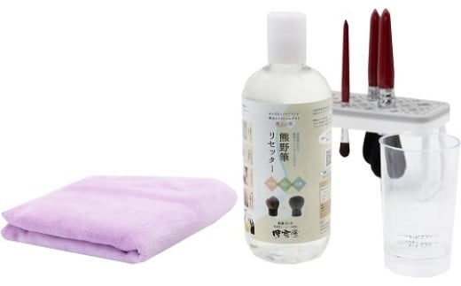 博雲堂 熊野筆リセッター メイクブラシクリーナー キット 【 洗浄液 500ml・専用カップ・速乾タオル・ スタンド付 】【メイクブラシ 熊野筆 クリーナー 洗浄液 お手入れ メンテナンス セット】