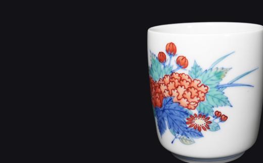 【有田焼】重要無形文化財 今右衛門窯 色絵磁器 錦芙蓉菊絵 湯呑