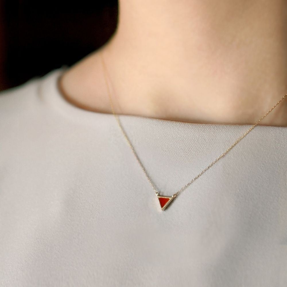 - 珊瑚 血赤珊瑚 トライアングル ペンダント ネックレス K10イエローゴールド 天然サンゴ 一点物 アクセサリー 厄除け お守り クリスマス バレンタイン 誕生日プレゼント 記念日 ホワイトデー ジュエリー 大人可愛い ギフト さんご サンゴ 高知県室戸市