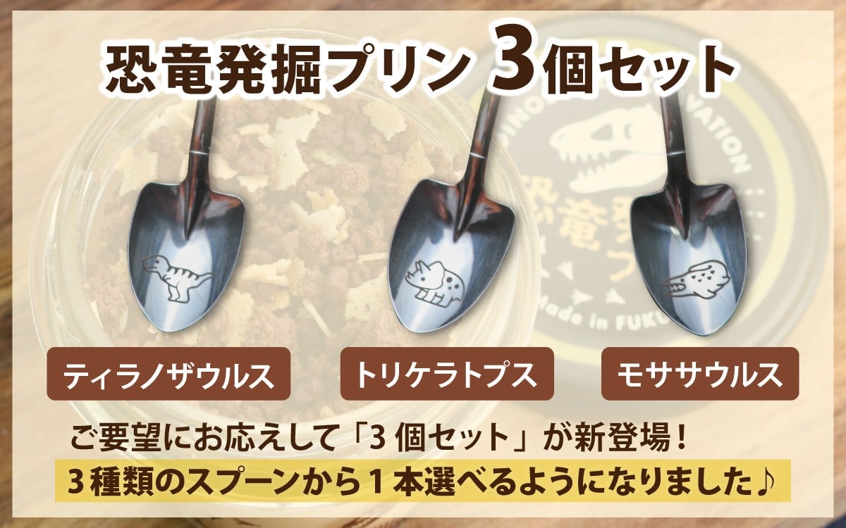 【12/24入金分まで年内発送 年内配送】選べる恐竜発掘プリン スプーン付き 3個or6個セット/ 冷凍 瓶詰 プリン おもちゃ 恐竜博物館 ティラノサウルス トリケラトプス スピノサウルス モササウルス 食玩 男の子 プレゼント スイーツ デザート おやつ 洋菓子 永平寺町 ダイナソー お土産 お菓子 ギフト 瓶プリン お祝い