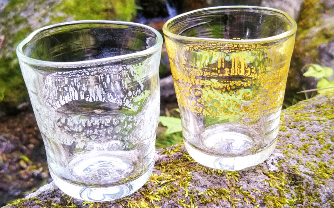 - 【浜口義則 作】ぐい呑みペア(金箔・銀箔)2個セット / 手作り ガラス 伝統工芸 埼玉県 No.272