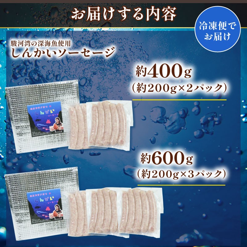 駿河湾 深海魚 しんかい ソーセージ 計 400g~600g (200g × 2~3p) 冷凍 ホワイト ウインナー 豚肉 イカ エビ 海鮮 魚介 お弁当 惣菜 美味しい 静岡県 沼津市