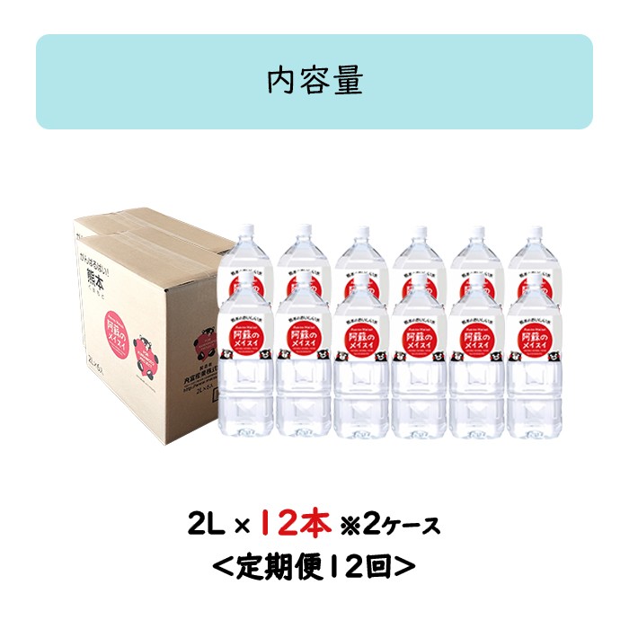 - 【ふるくま】定期便 12回 阿蘇のメイスイ 阿蘇山 天然水 2L × 12本 2ケース 熊本 阿蘇 水 みず 飲料 くまモンラベル 熊本県 ミネラルウォーター 非加熱殺菌 賞味期限2年 730日 備蓄 保存用