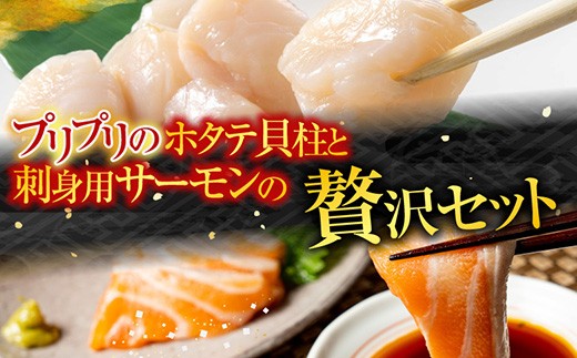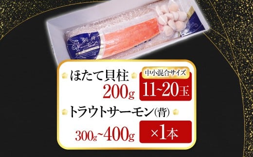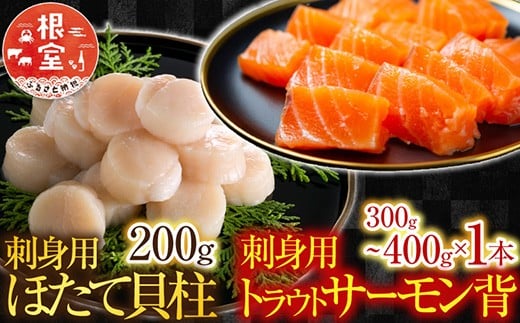 A-28208 根室海鮮市場<直送>刺身用ほたて貝柱200g・刺身用トラウトサーモン(背)300~400g×1本