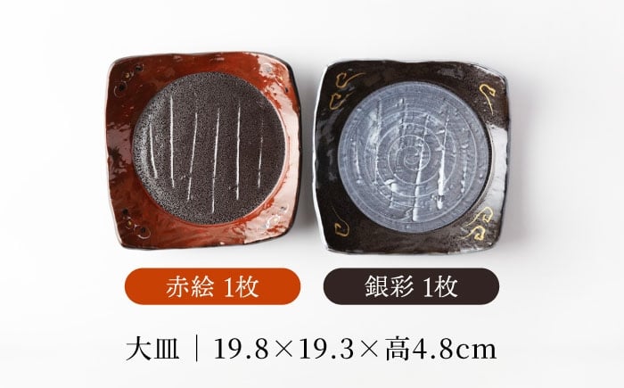 - 【美濃焼】南蛮手描き赤絵&銀彩 大皿 2枚セット 【TOKI MINOYAKI/カネマス陶器】食器 角皿 和皿 [MEE140]