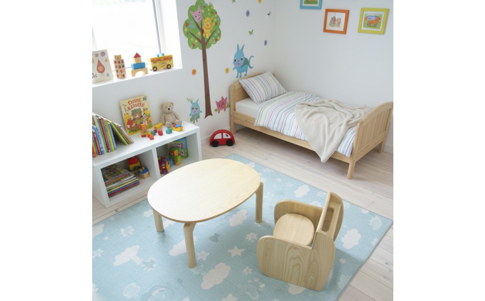 - 【大川家具】無垢材 キッズテーブル 幅750 ホワイトアッシュ おしゃれ 天然木 組み立て不要